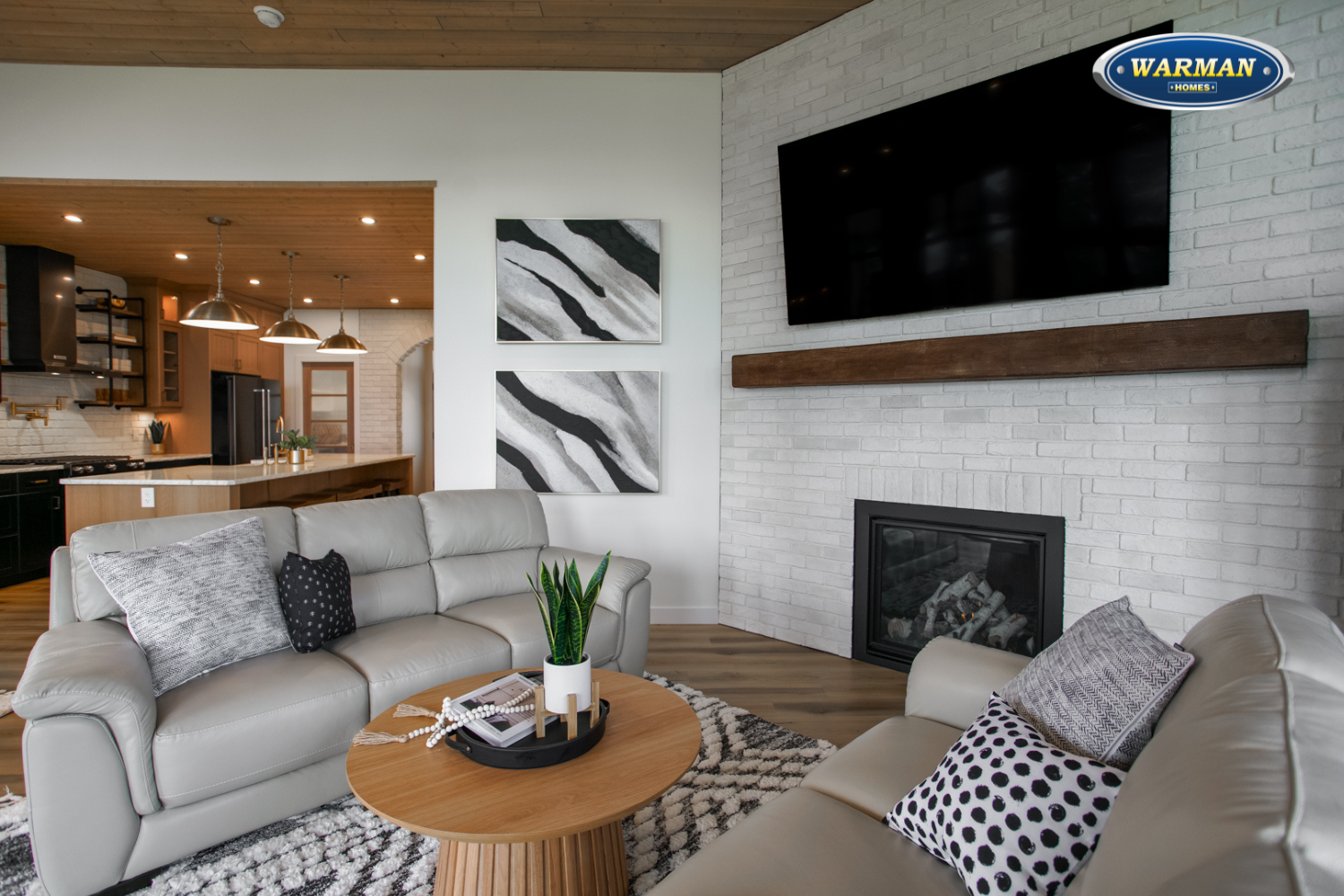 - Natural Gas Fireplace in Living Room c/w Brick Finish to Ceiling