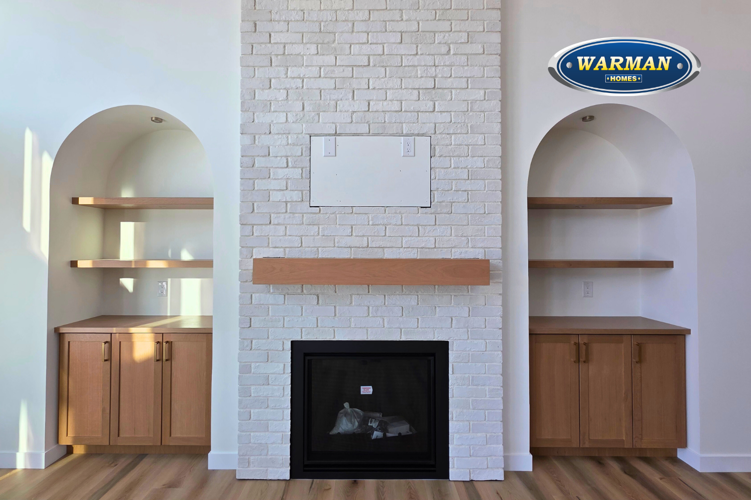 - Natural gas fireplace in living room c/w built in cabinets and finished with stone